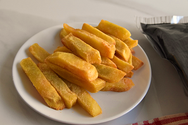剛出爐的地瓜薯條香噴噴的,不用沾番茄醬或胡椒鹽就很好吃