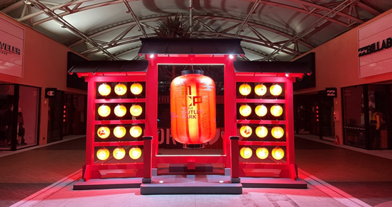 除了空間視覺可以以紅色為主之外,我們還能選擇在一些重點地段,像是百貨大廳的出入口、百貨中庭廣場、BP陳列點等也可以設計一些大型過年佈置的裝置物,結合新年的吉祥話,或是祈願活動等,增加年節氣氛外也可以與話題串聯、帶動人氣,成為網美朝聖打卡的新地標唷!