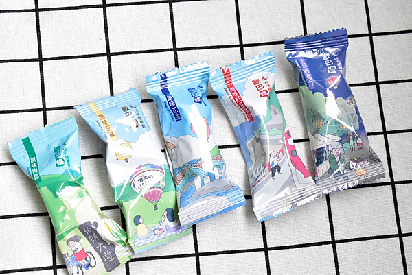 蛋捲有5種口味,每一種口味都有不同包裝,分別有